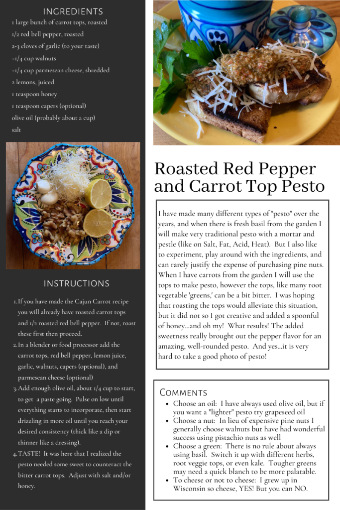 Roasted Red Pepper and Carrot Top Pesto